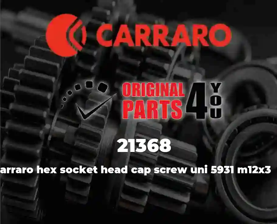Notes: 21368 HEX SOCKET HEAD CAP SCREW UNI 5931 M12X3 is original CARRARO product. 21368 HEX SOCKET HEAD CAP SCREW UNI 5931 M12X35 is commonly used in transmissions/axles/engines 129144, 139555, 140296, 141181, 141313, . if you have any questions please do not hesitate to contact us via Whatsapp +17275652849