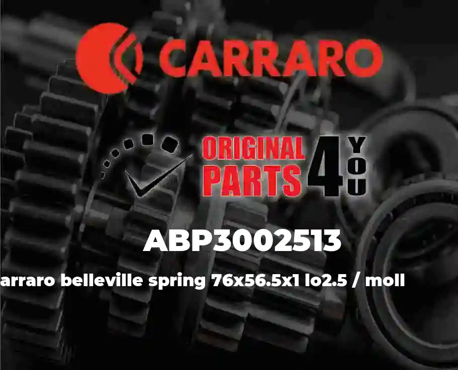Notes: ABP3002513 BELLEVILLE SPRING 76x56.5x1 lo2.5 / MOLL is original CARRARO product. ABP3002513 BELLEVILLE SPRING 76x56.5x1 lo2.5 / MOLL1 is commonly used in transmissions/axles/engines . if you have any questions please do not hesitate to contact us via Whatsapp +17275652849