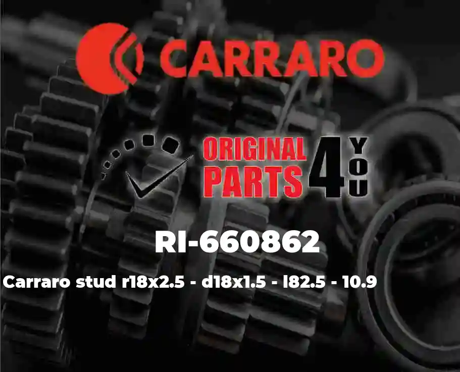 Notes: RI-660862 STUD R18X2.5 - D18X1.5 - L82.5 - 10.9 is original CARRARO product. RI-660862 STUD R18X2.5 - D18X1.5 - L82.5 - 10.91 is commonly used in transmissions/axles/engines . if you have any questions please do not hesitate to contact us via Whatsapp +17275652849